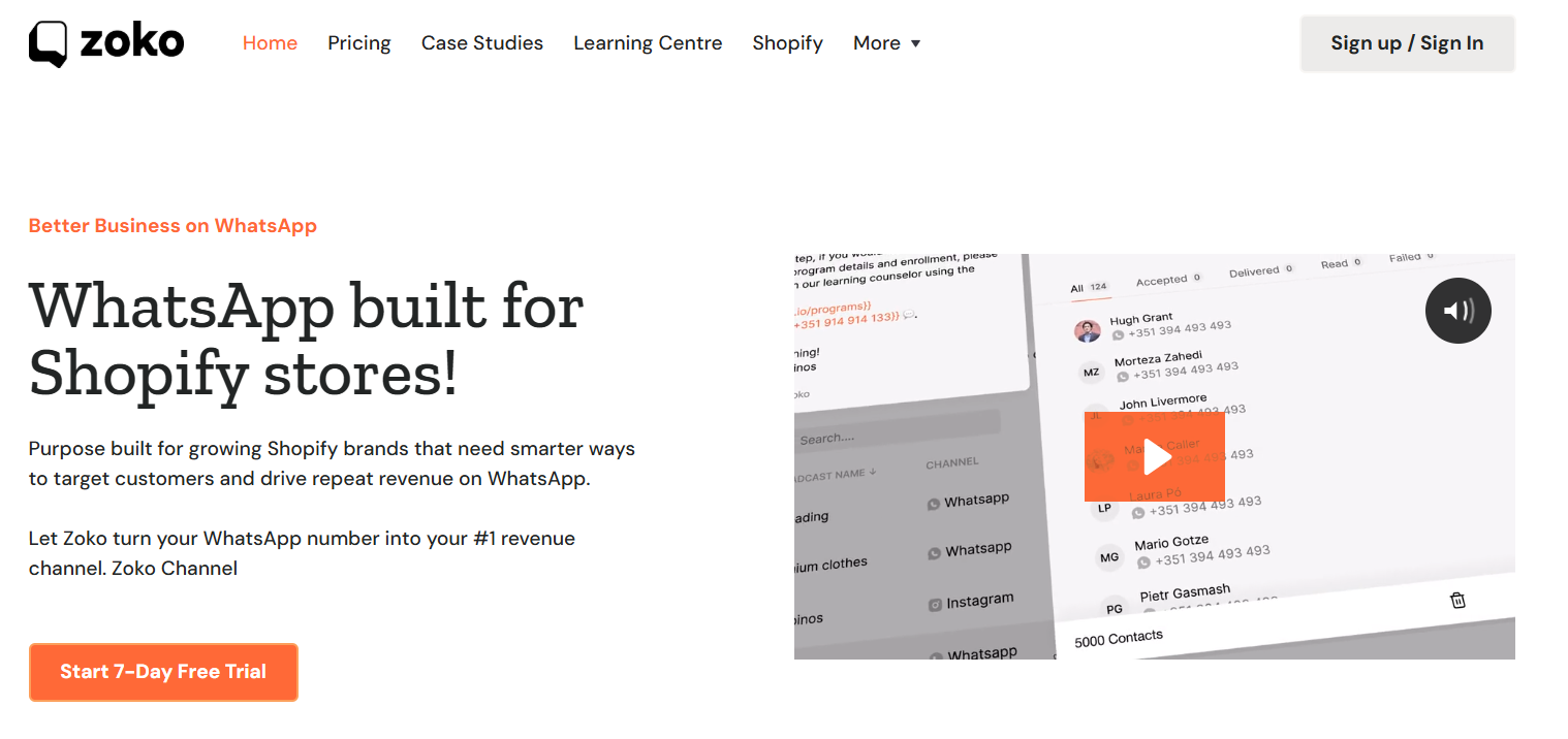 Zoko is an e-commerce-focused WhatsApp platform with deep Shopify integration as its core strength. Its shared inbox, catalog syncing, and campaign tools are designed for retailers who want to turn WhatsApp into a storefront extension rather than just a support channel.Â