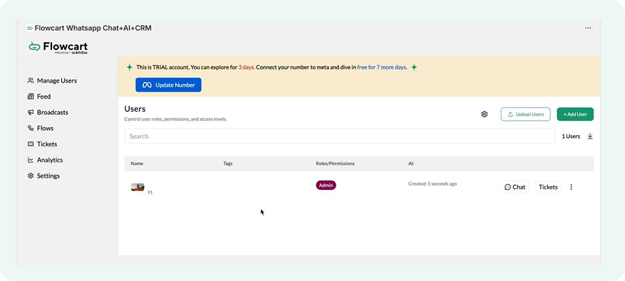 It also means your support team needs to be ready to handle responses. Flowcart helps you lift this aspect through AI flows, agent routing, and efficient ticket management inside the dashboard.
