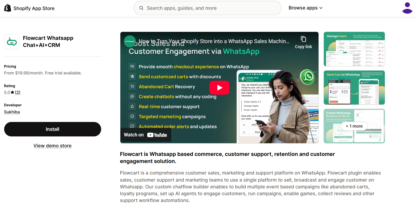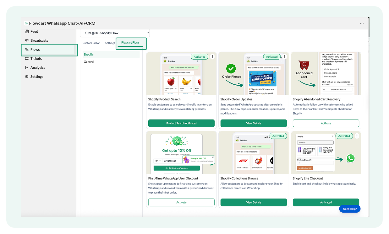 For this article, we’ll use Flowcart, a more comprehensive, conversion-first WhatsApp business platform designed to turn WhatsApp into your Shopify store’s sales engine.