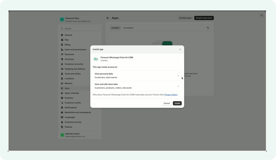 To install the Flowcart plugin on Shopify: