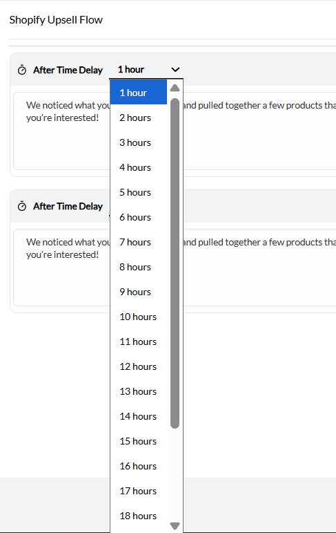 - Trigger one or two upsell messages by configuring the After Time Delay setting