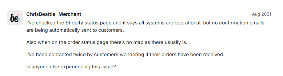 What is one big blocker to using email for Shopify marketing? Your emails might hit a block and fail to deliver. Take this Shopify user’s complaint as an example.