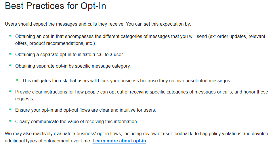 Before blasting your customers with broadcasts, ensure they have consented. Personalize messages and respect frequency limits. Keep response time within 3 minutes and ensure there’s a clear human handoff.
