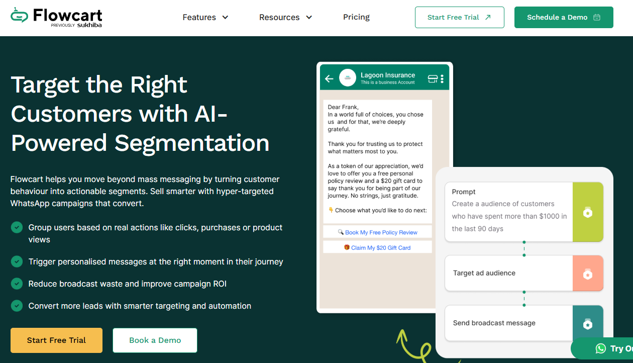 Manually managing promotional broadcasts is a hassle. Flowcart’s smart broadcast feature automates this process and helps you reach thousands of customers with hyperpersonalized and targeted offers in seconds.