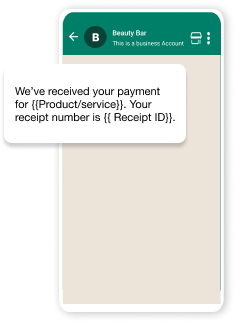 - In-Chat Checkout: Link confirmation and payment templates directly to the checkout steps so transactional messages appear immediately after a purchase.