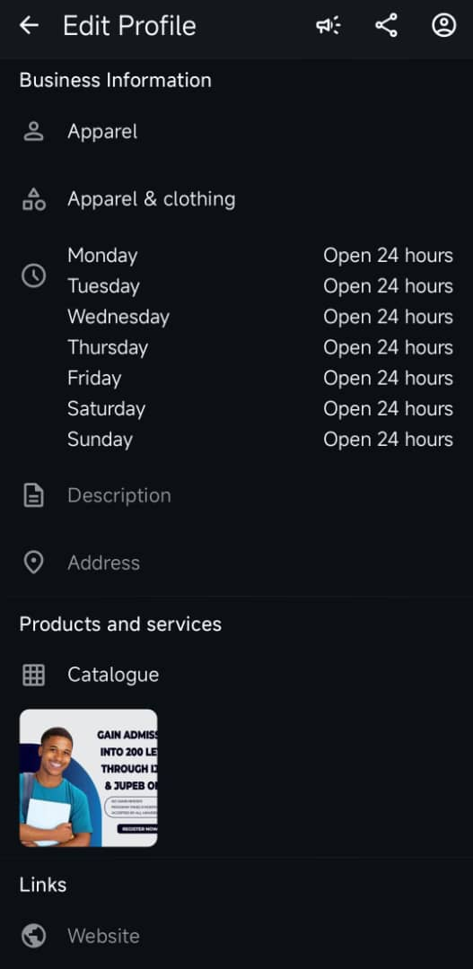 Once your number is verified, you’ll be prompted to create a business profile. WhatsApp Business is now your new digital storefront, similar to a mini-Shopify. That means you need to be as explicit and detailed as possible.Â