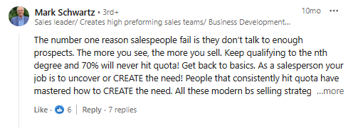 In response to Scott Leese’s stand, another LinkedIn user, also a Sales Leader, raised another point worth noting.Â