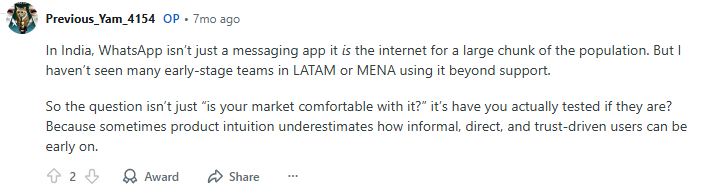 Reddit Thread: Whatsapp as a Prototype Channel for Growth