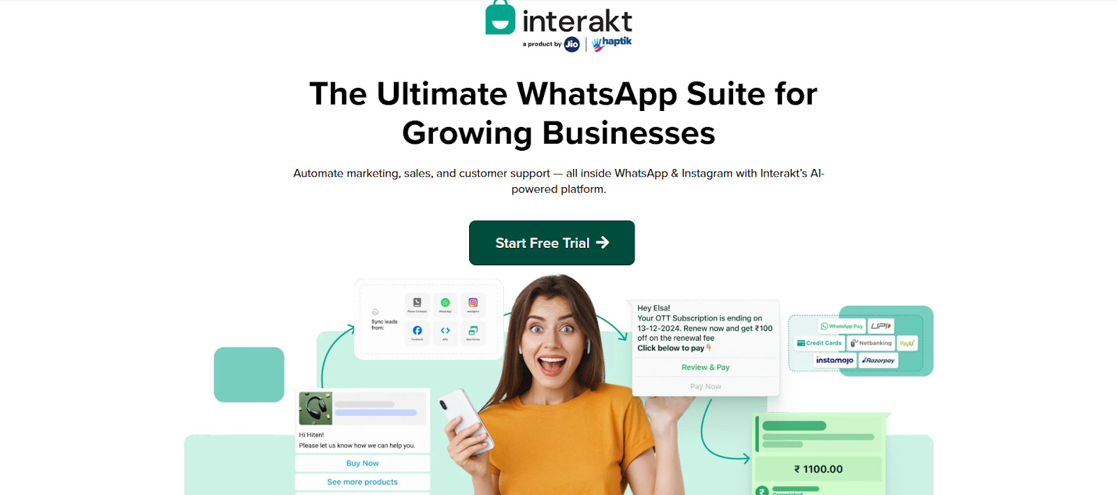 Interakt helps move customers from interest to checkout using automation and reminders inside WhatsApp.