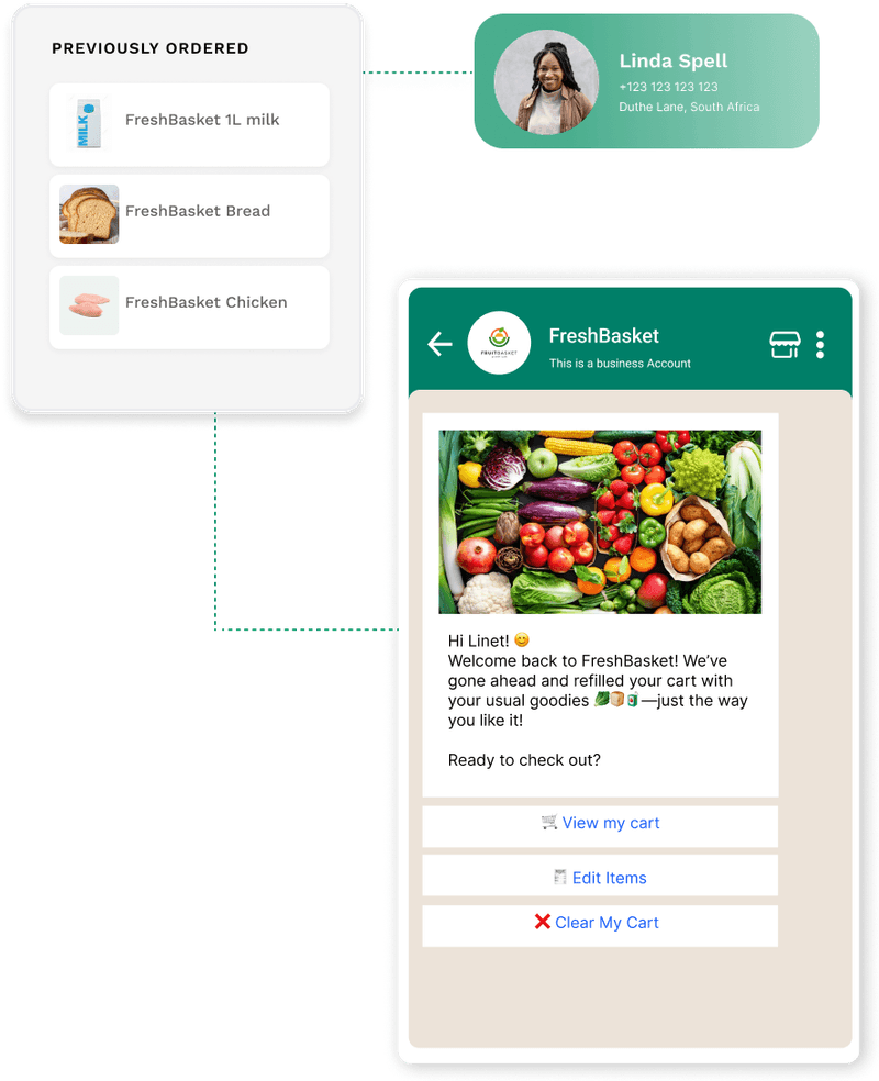 The customer goes right back to the WhatsApp chat. They can ask more questions, browse recommended items, or reorder in the future.