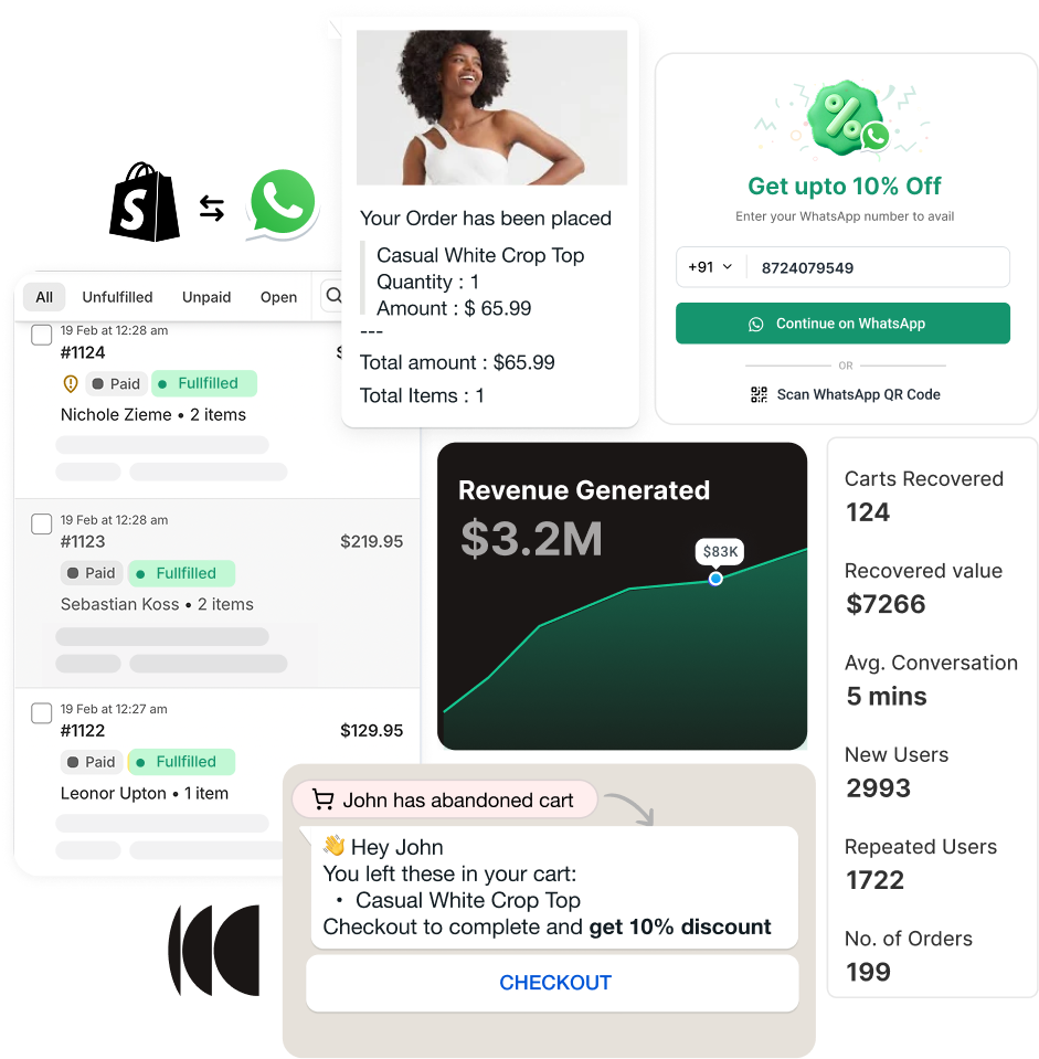 - Launch Click-to-WhatsApp ads and trigger automated recovery nudges for abandoned carts