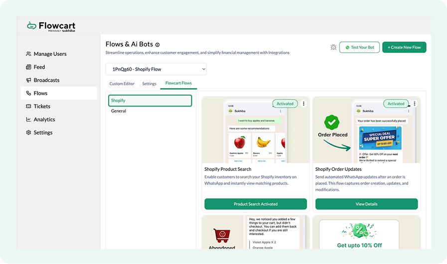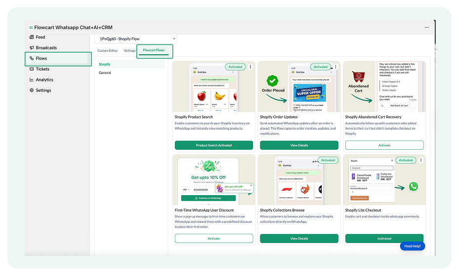 - Navigate to Flowcart Flows and select Shopify to view your store-specific automations