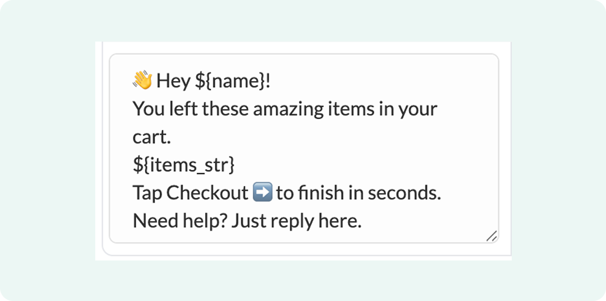 The third cart reminder is your final follow-up for shoppers who haven’t responded to earlier messages. At this point, the customer is aware of the cart, so this reminder should focus on clarity and closure rather than repeated nudging.