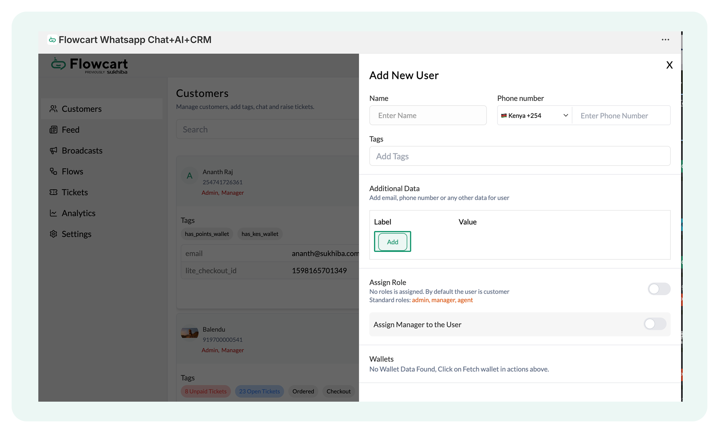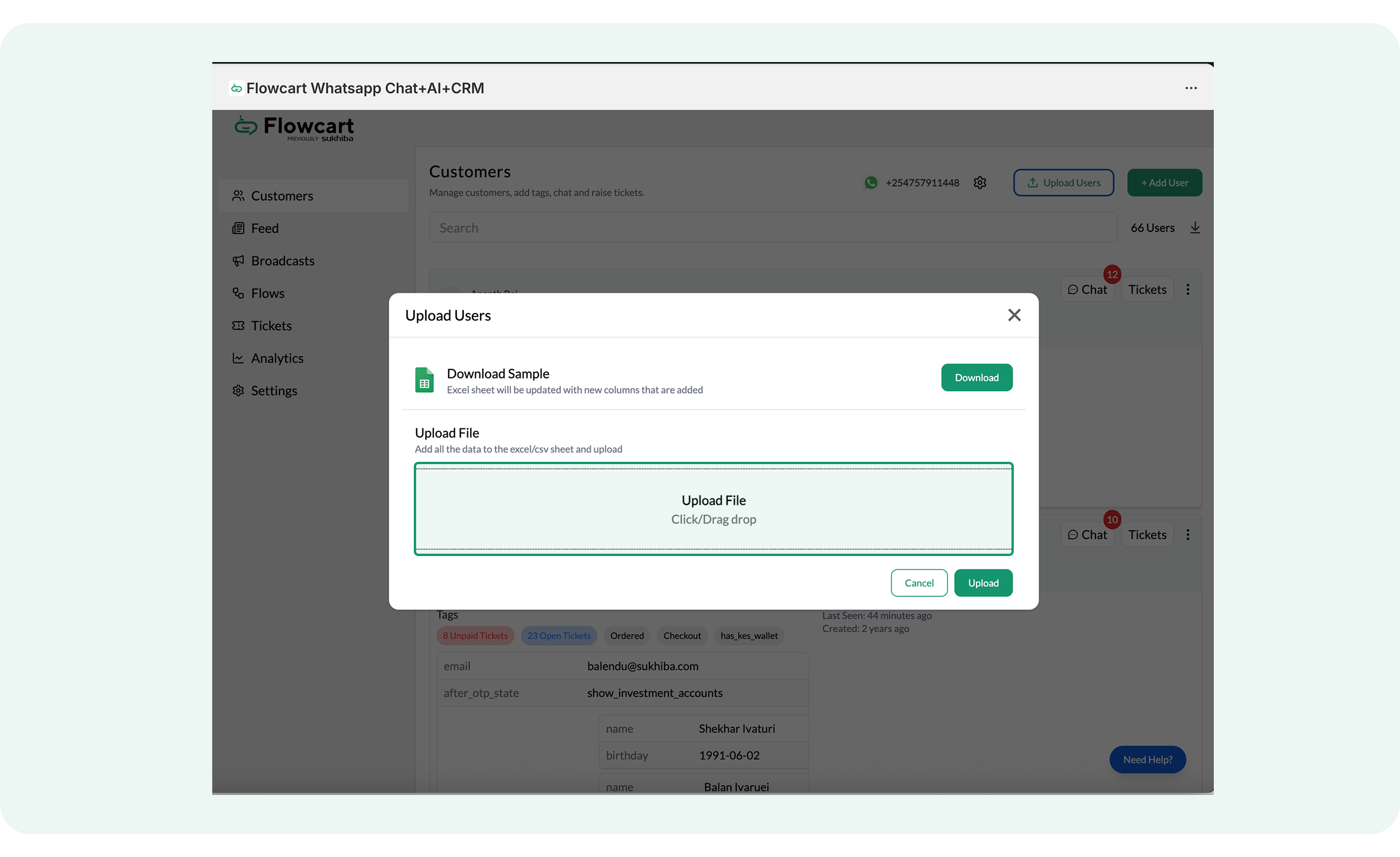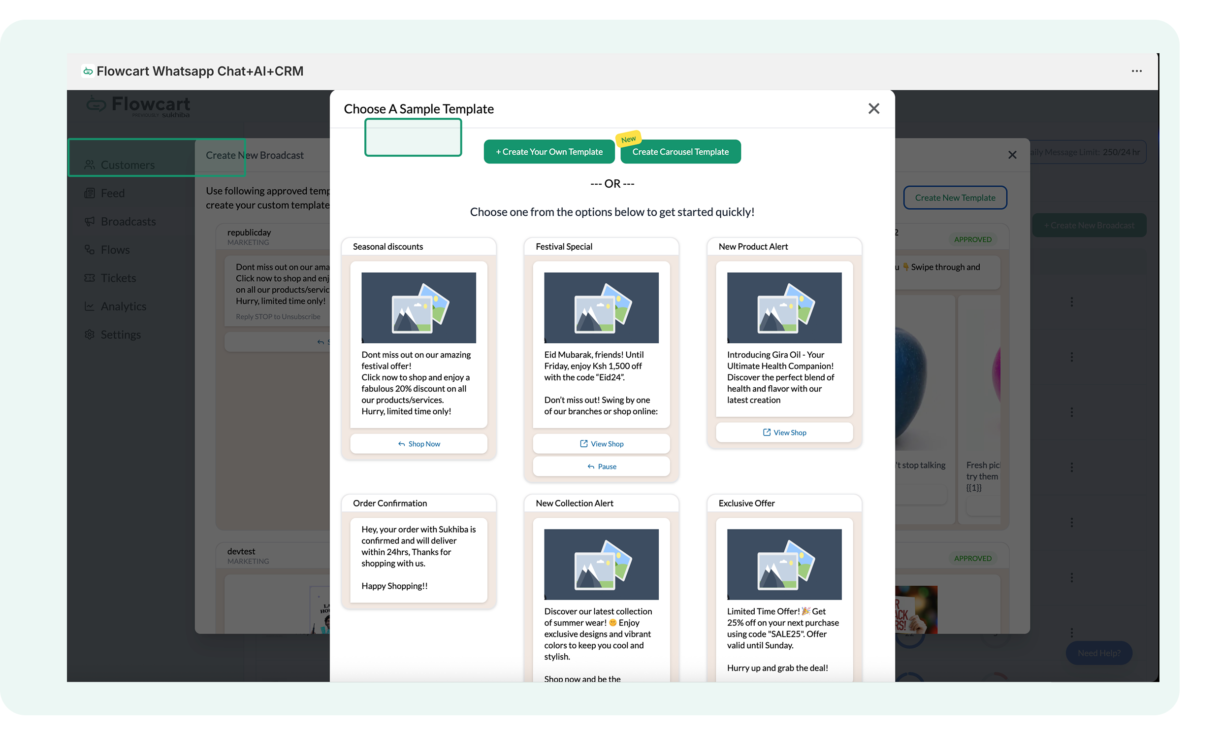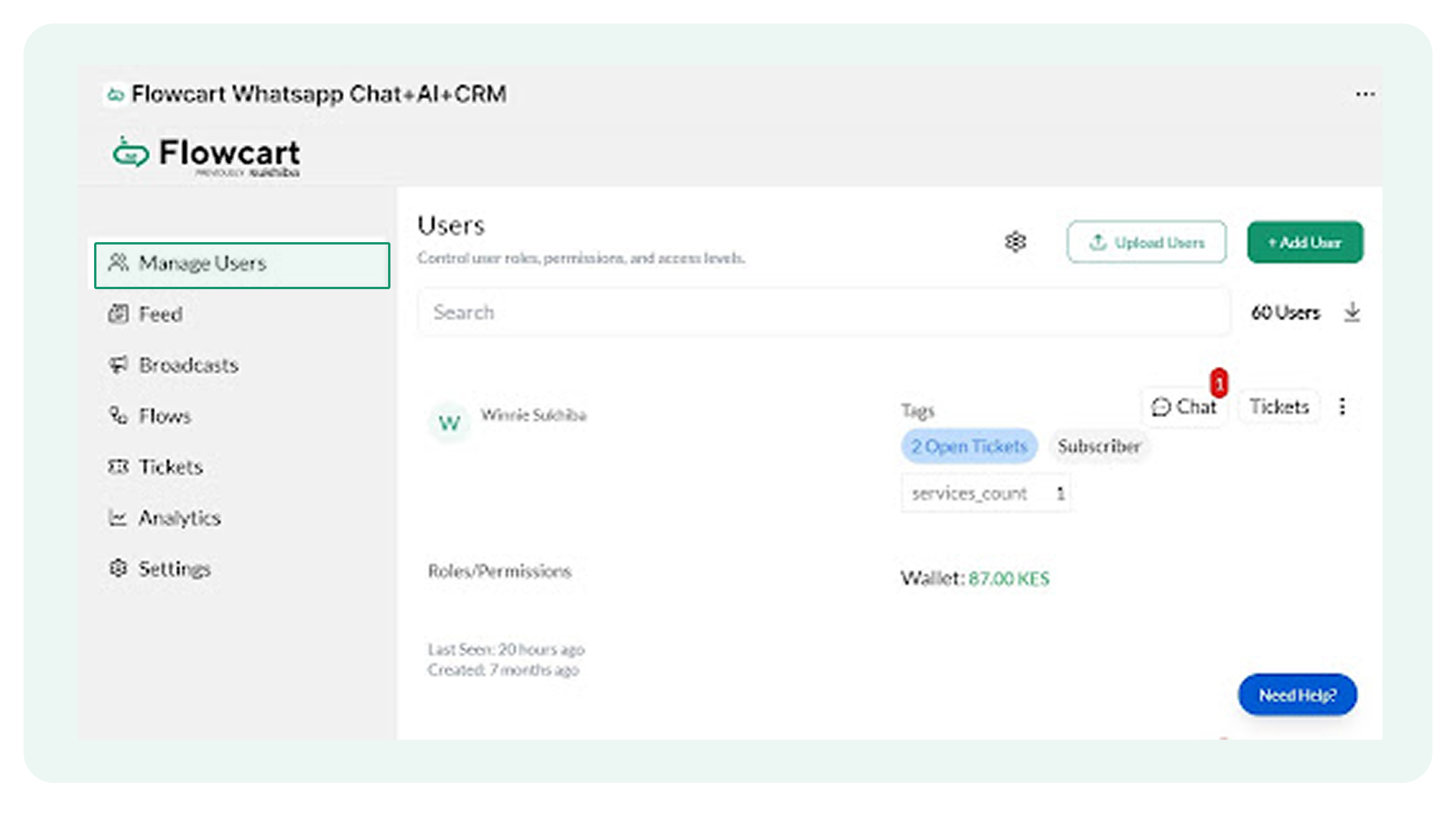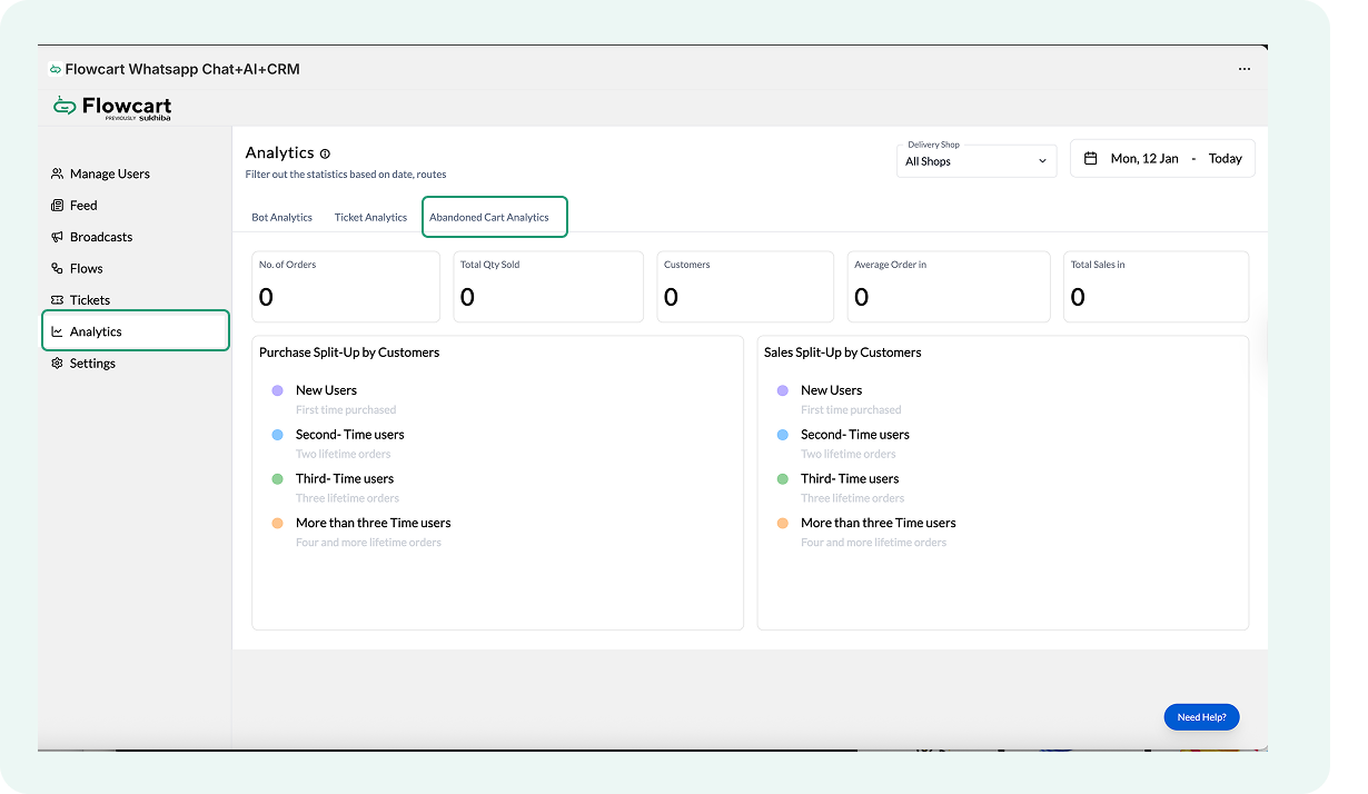 - Log in to the Flowcart Whatsapp Chat+AI+CRM dashboard