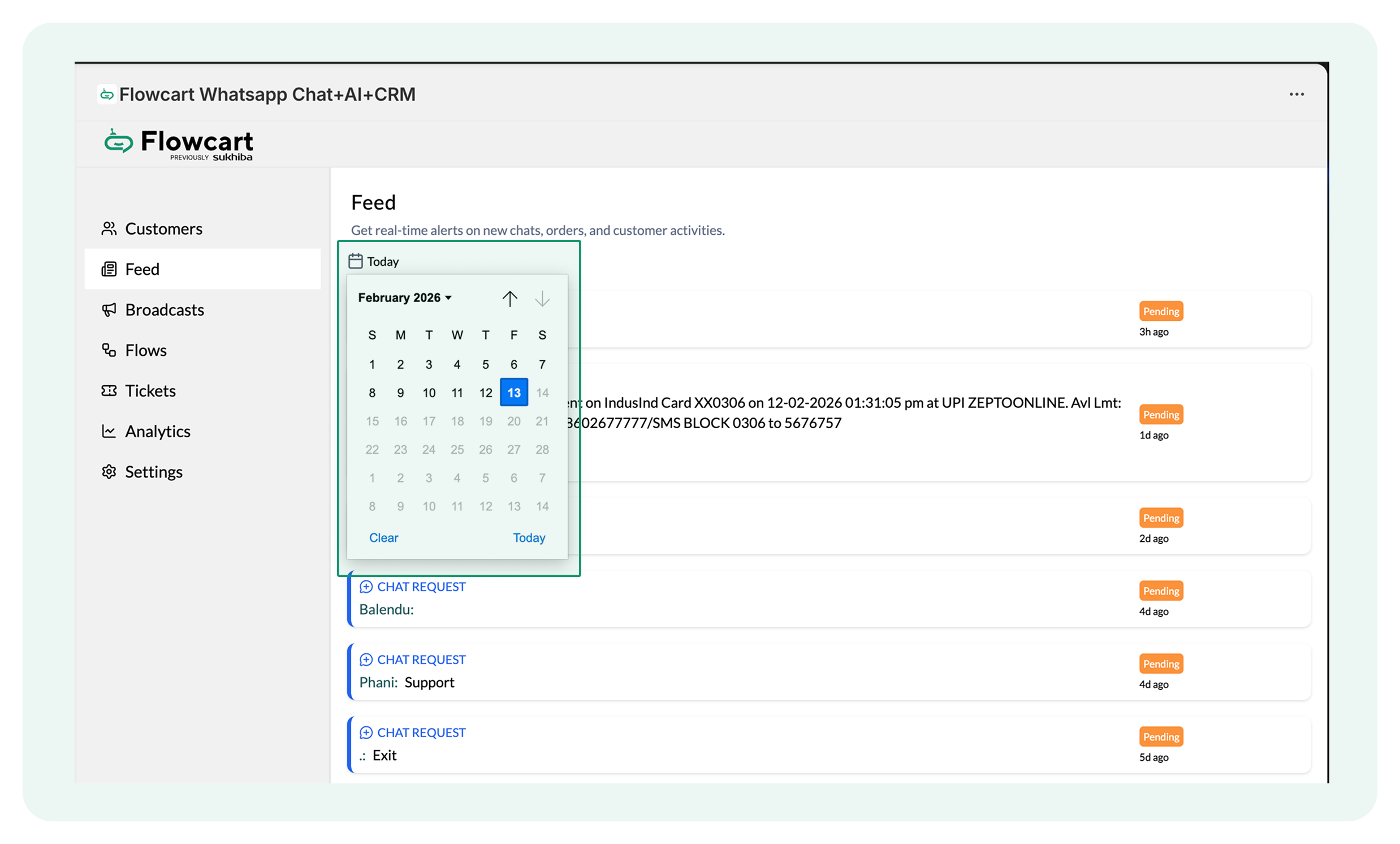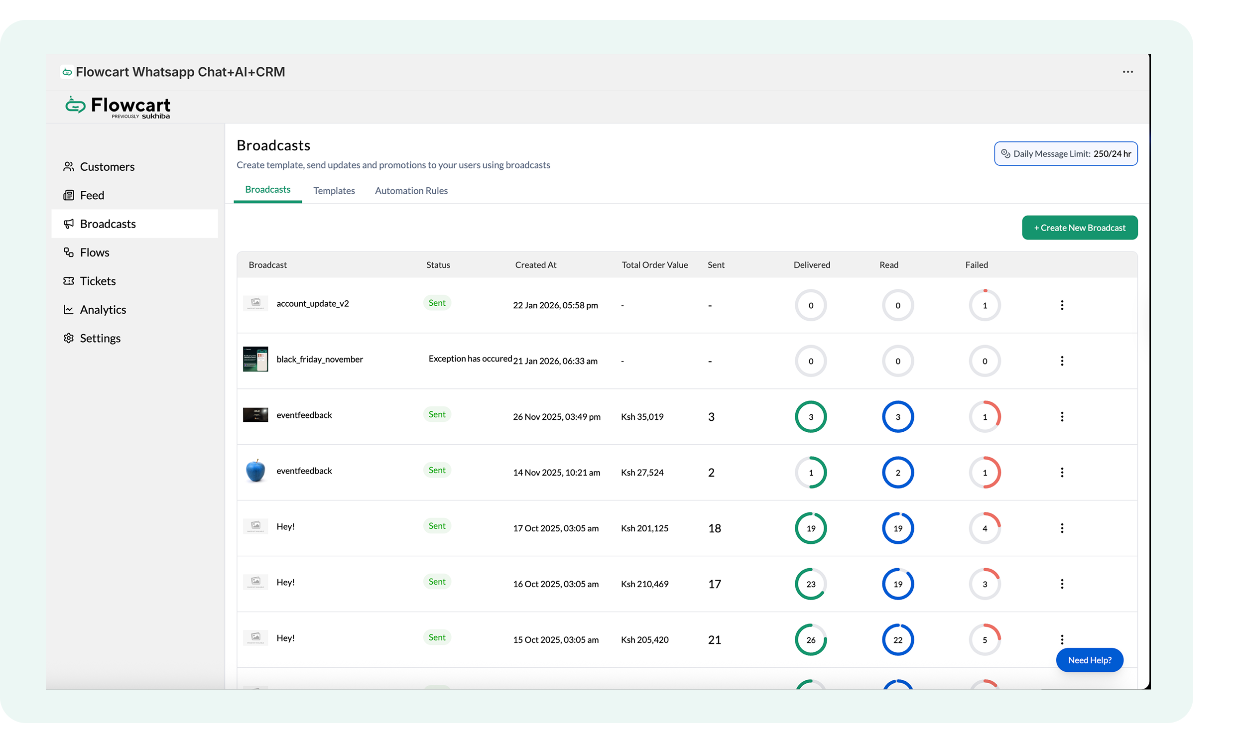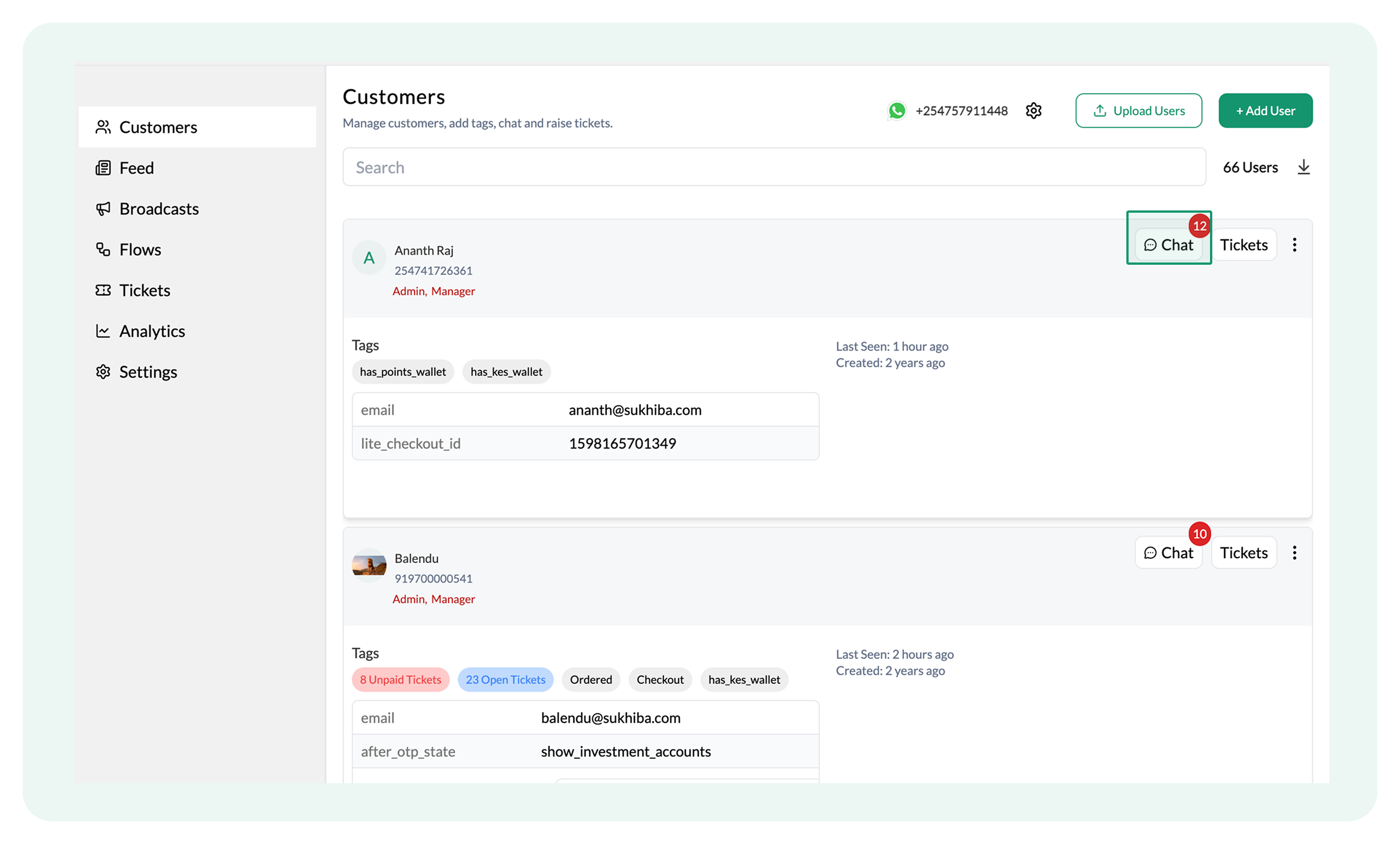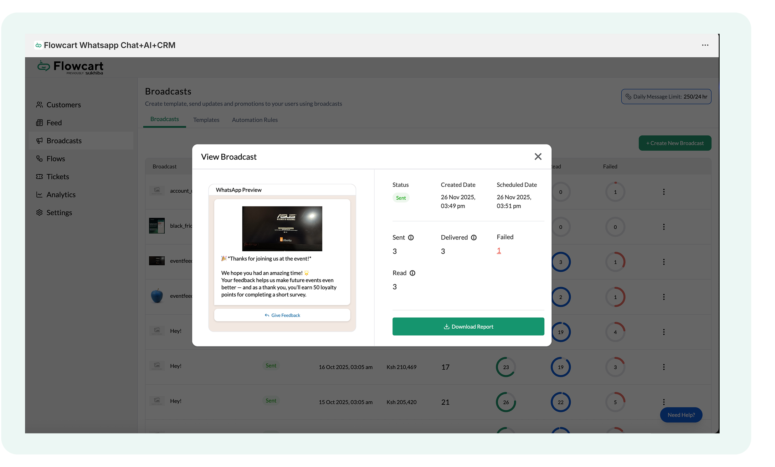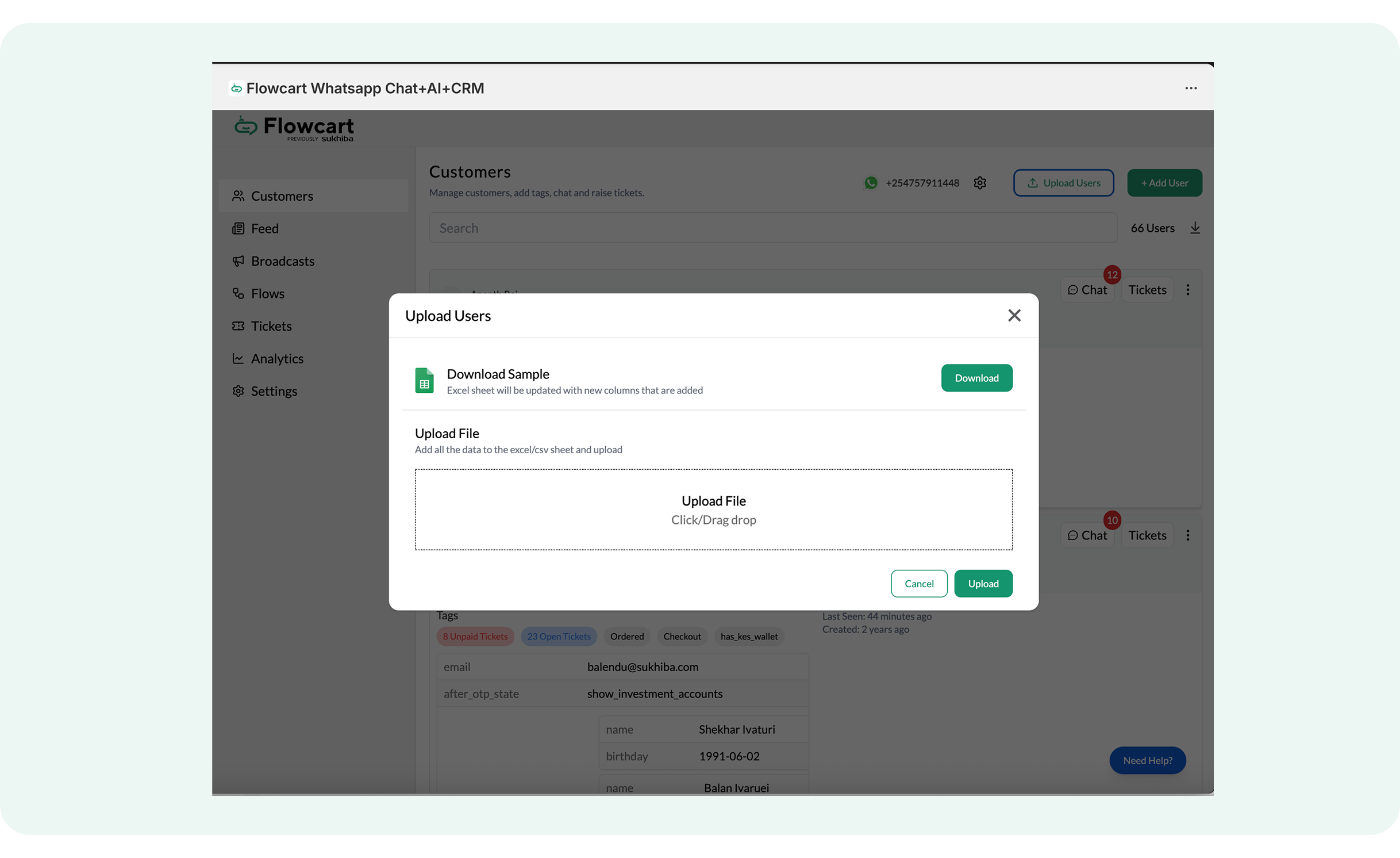 - Log in to the Flowcart Whatsapp Chat+AI+CRM dashboard