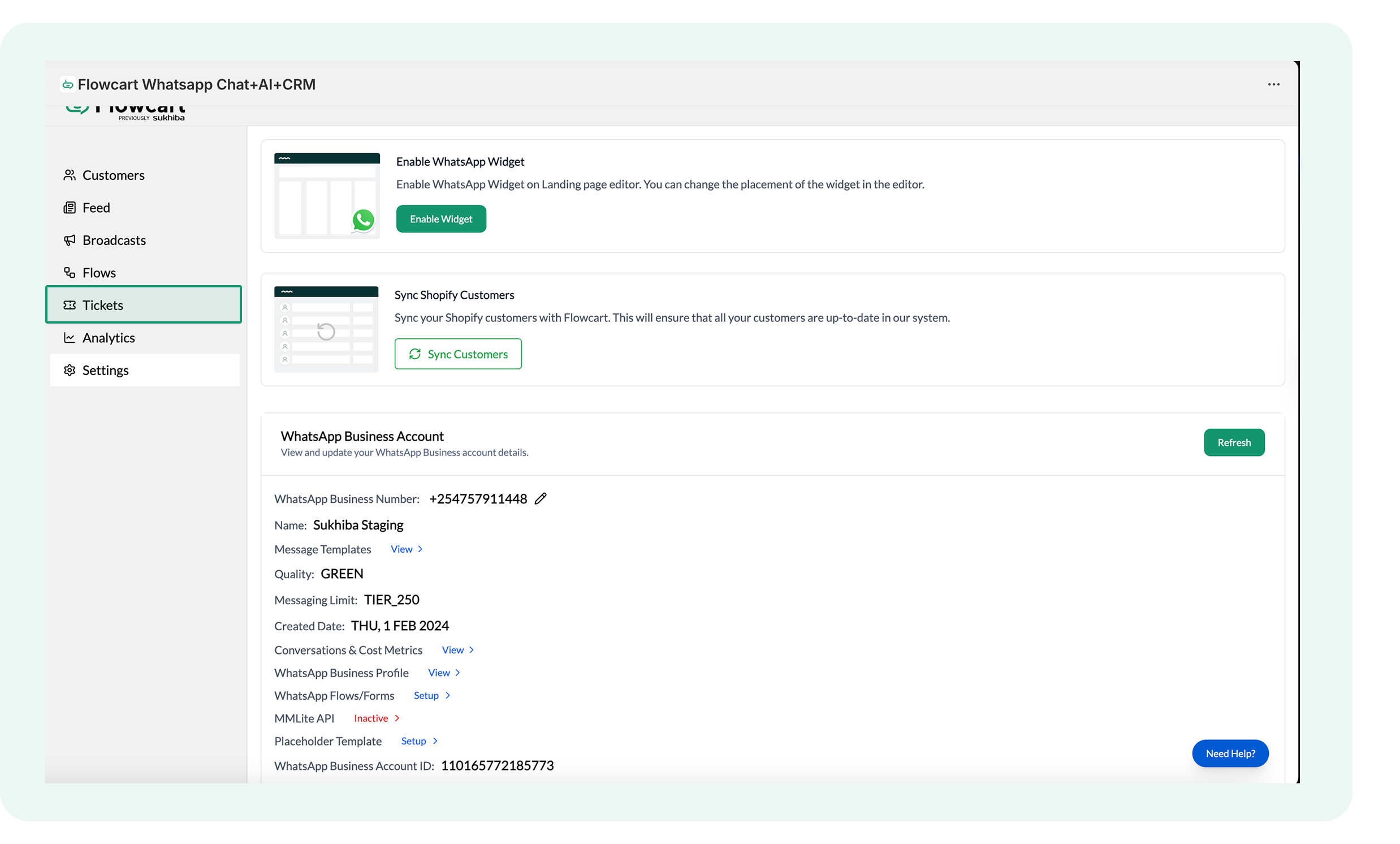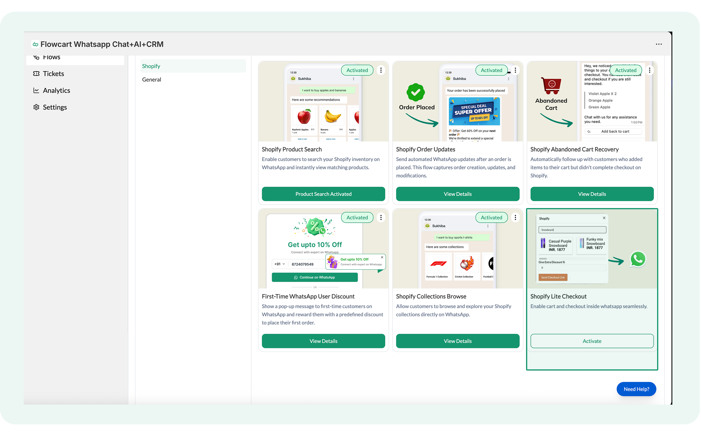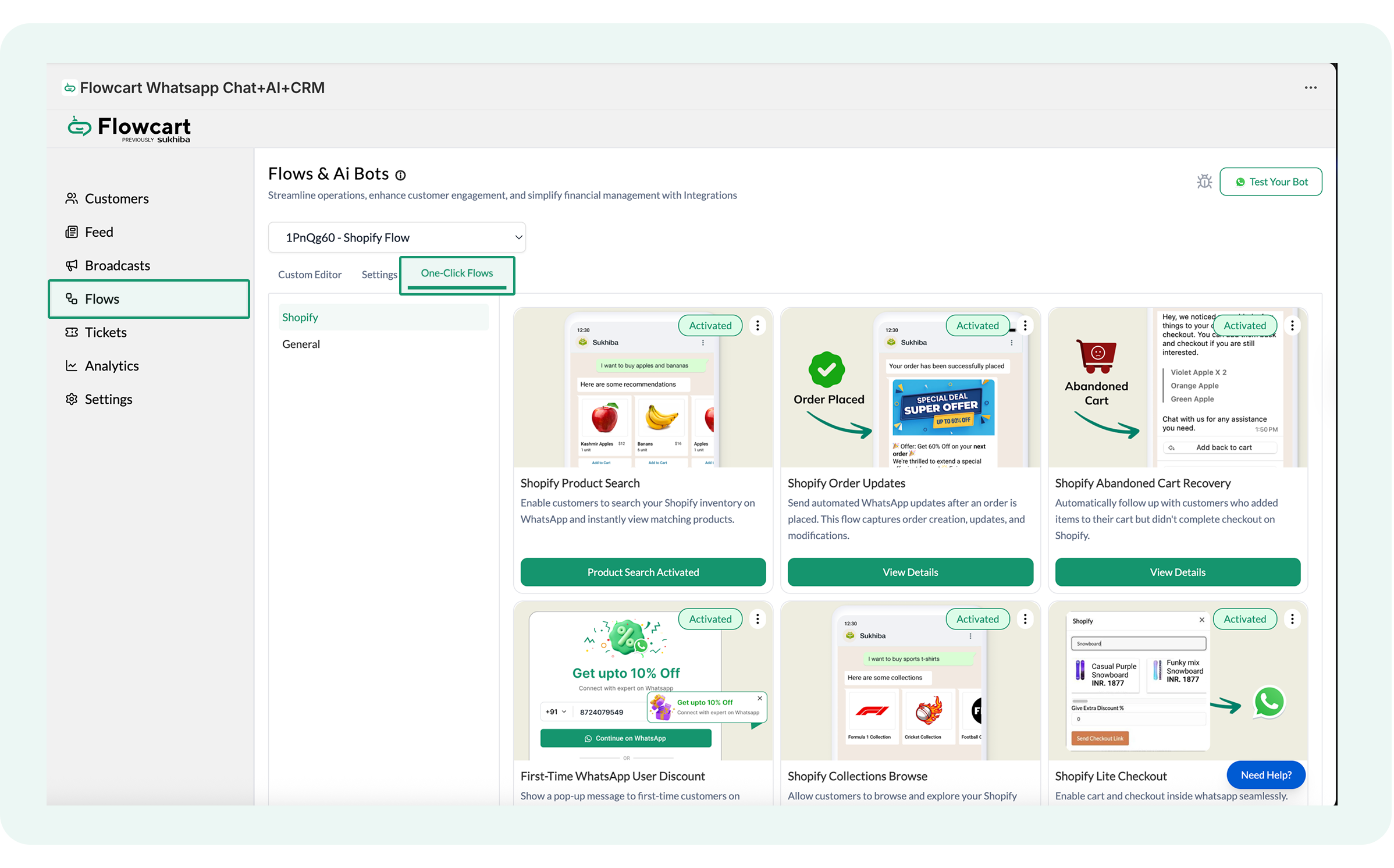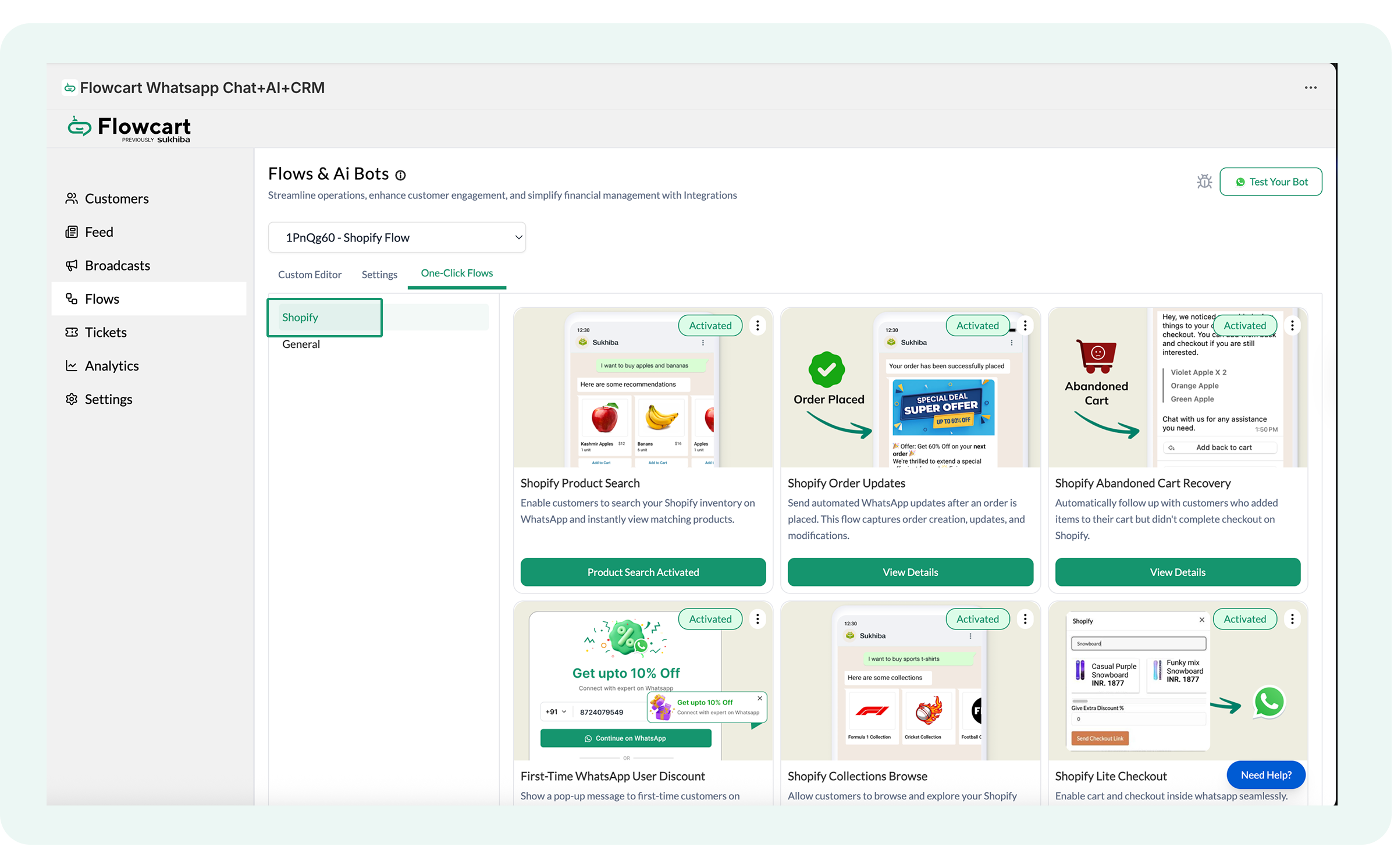- The Flowcart Shopify Plugin installed and configured on your Shopify admin to bridge your store data with WhatsApp