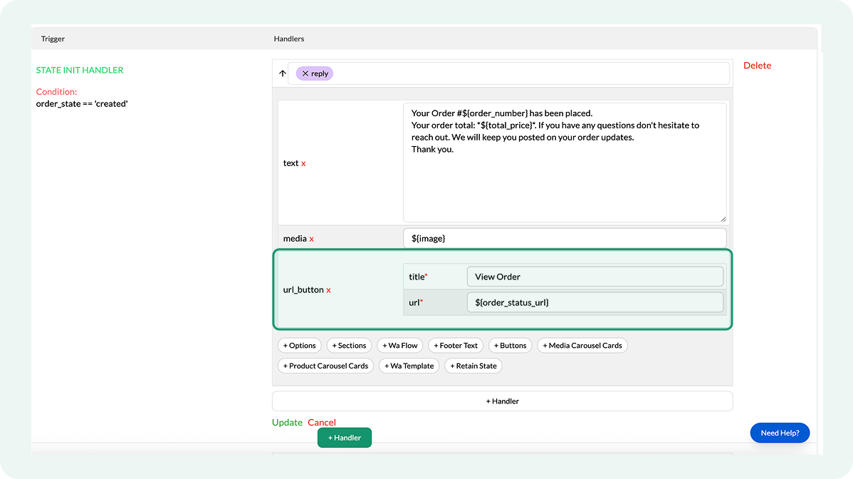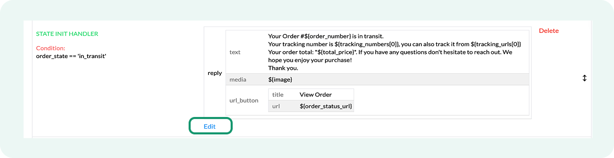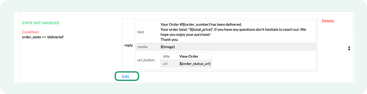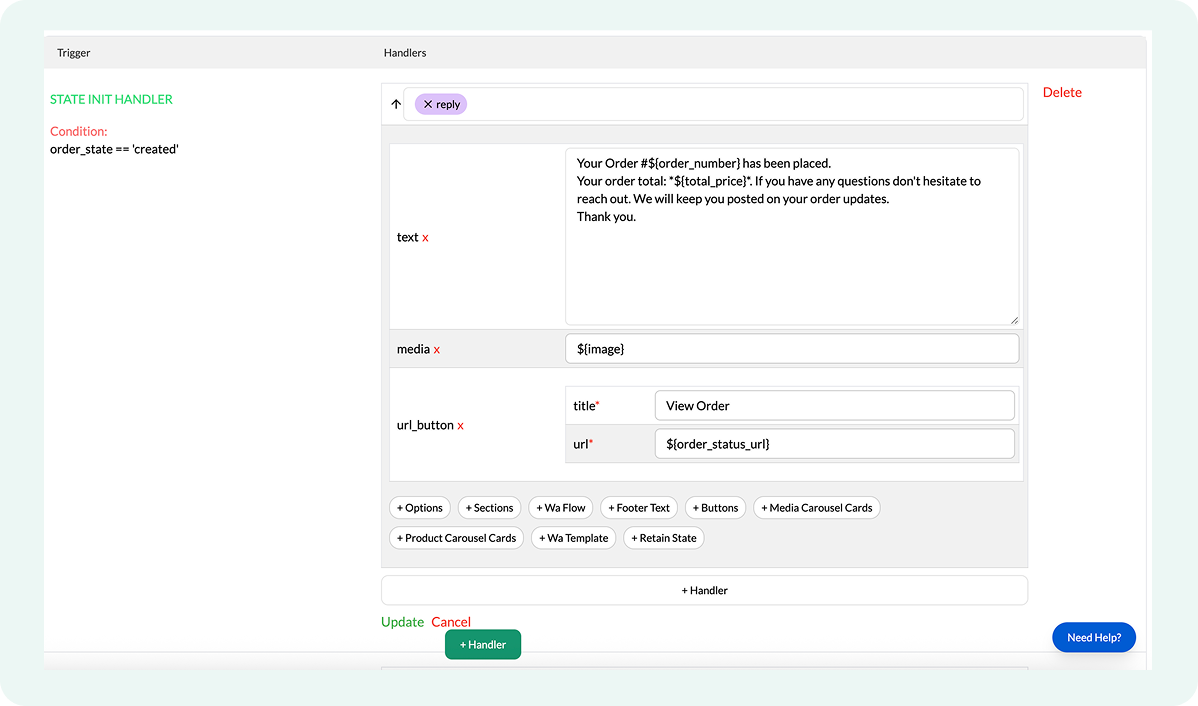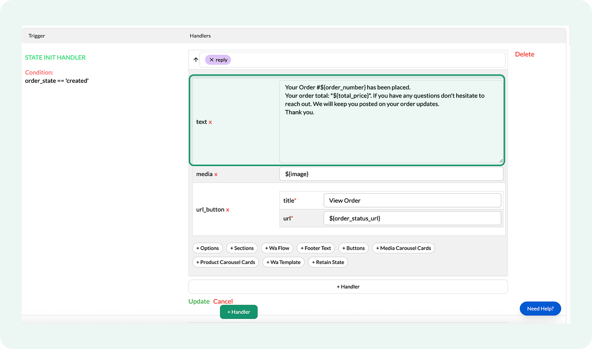 Only the handlers whose order_state condition matches the order’s actual status run. If an order moves directly from one status to another, the flow sends only the update corresponding to the final status.