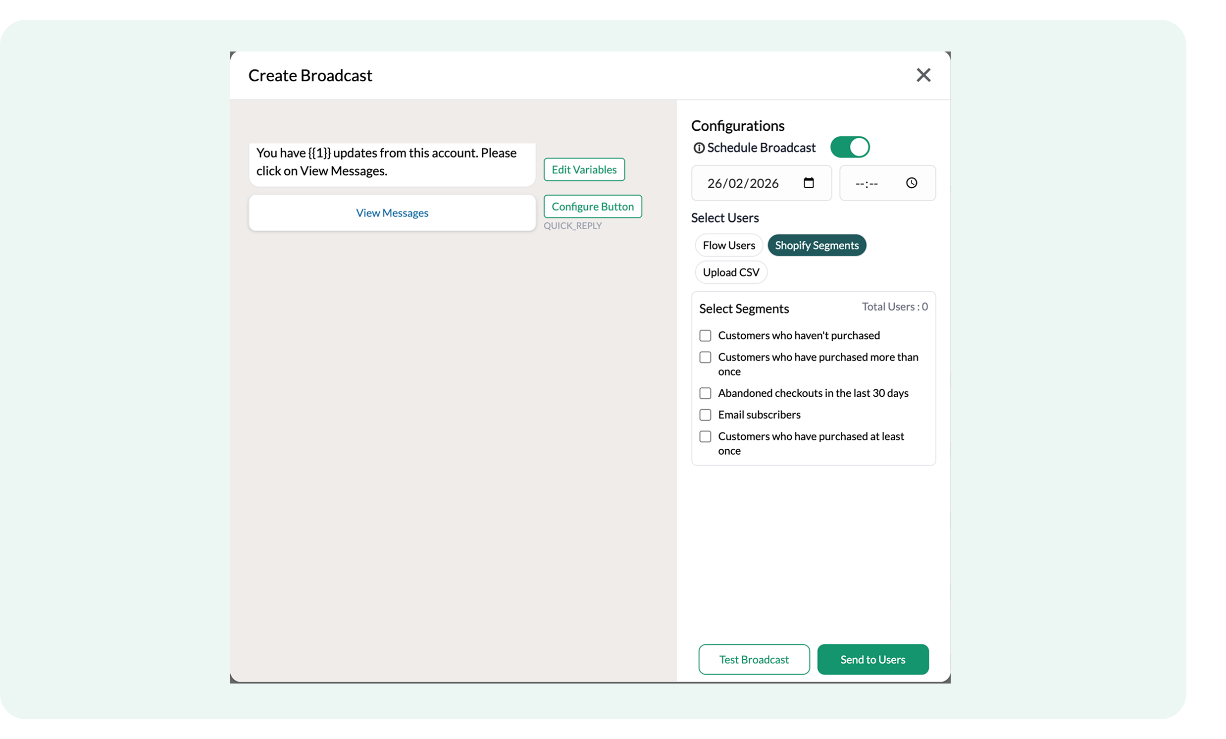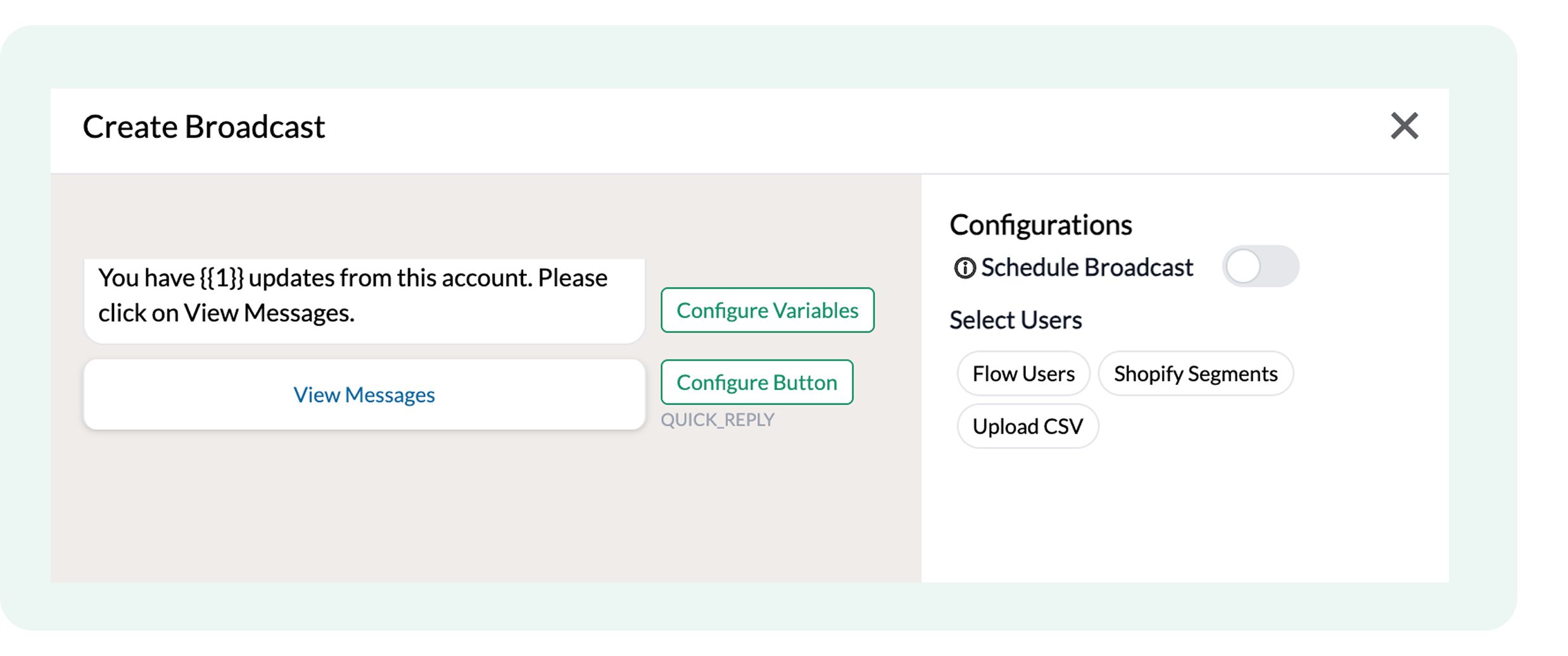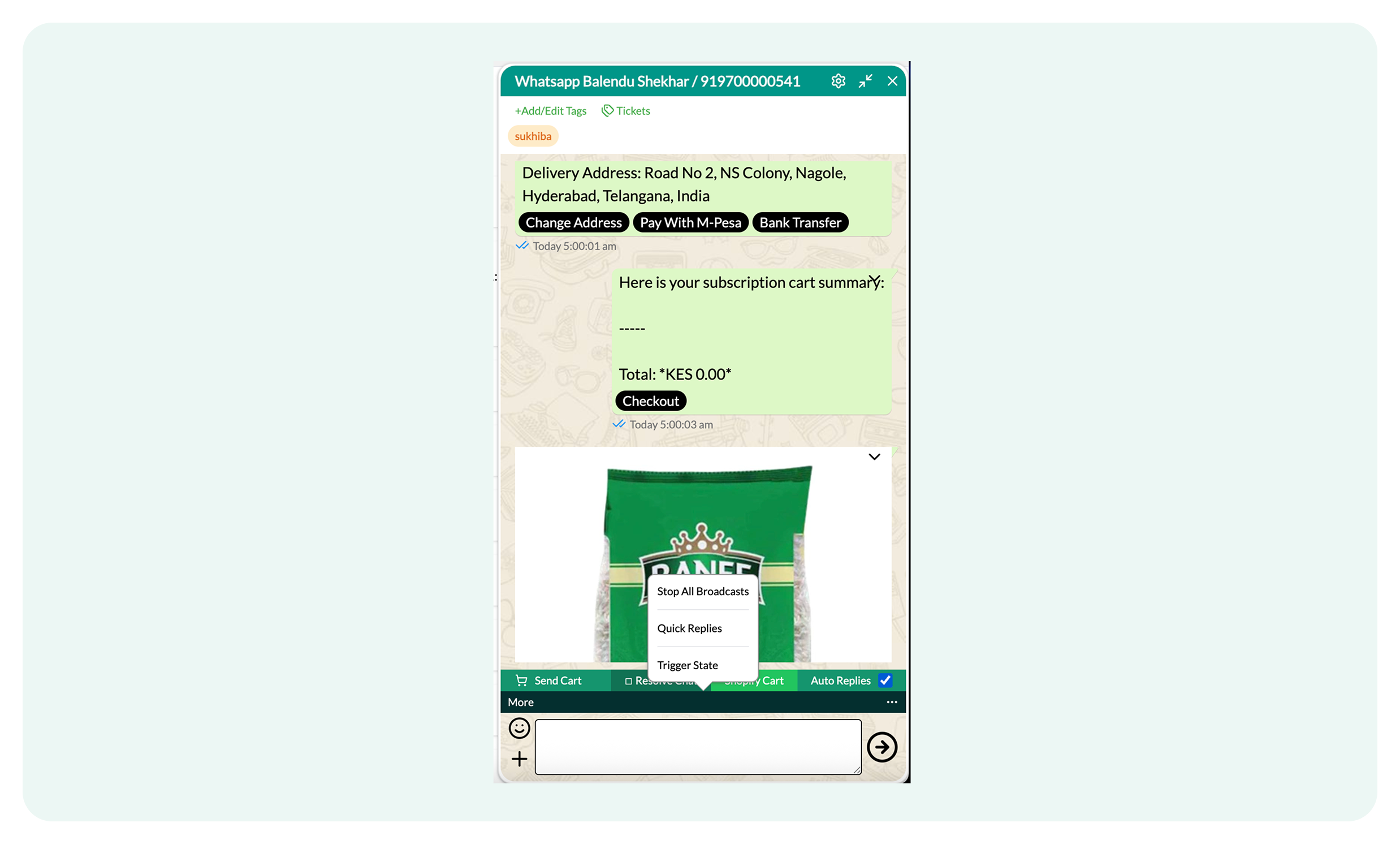 - Shopify Lite Checkout: Enable a seamless cart and checkout experience directly inside WhatsApp.