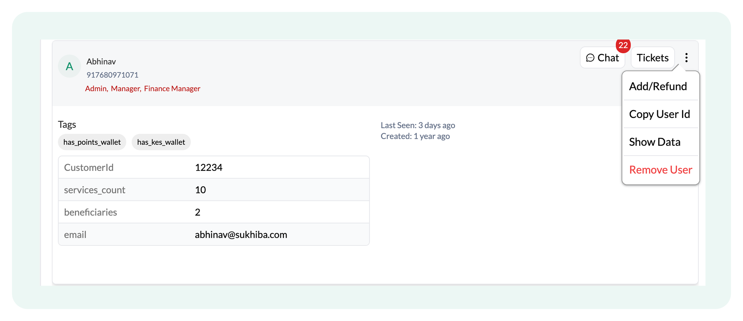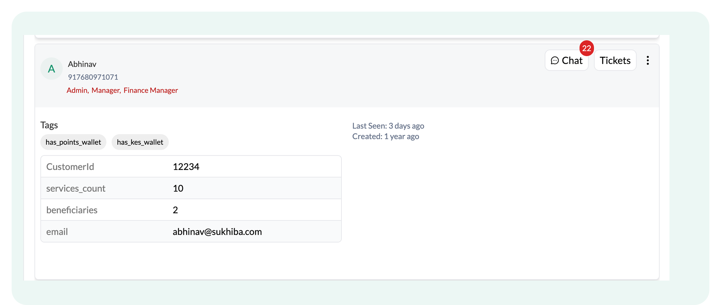 - Open a specific user profile by clicking on their name. For example, this is a ticket created by Shreyansh: