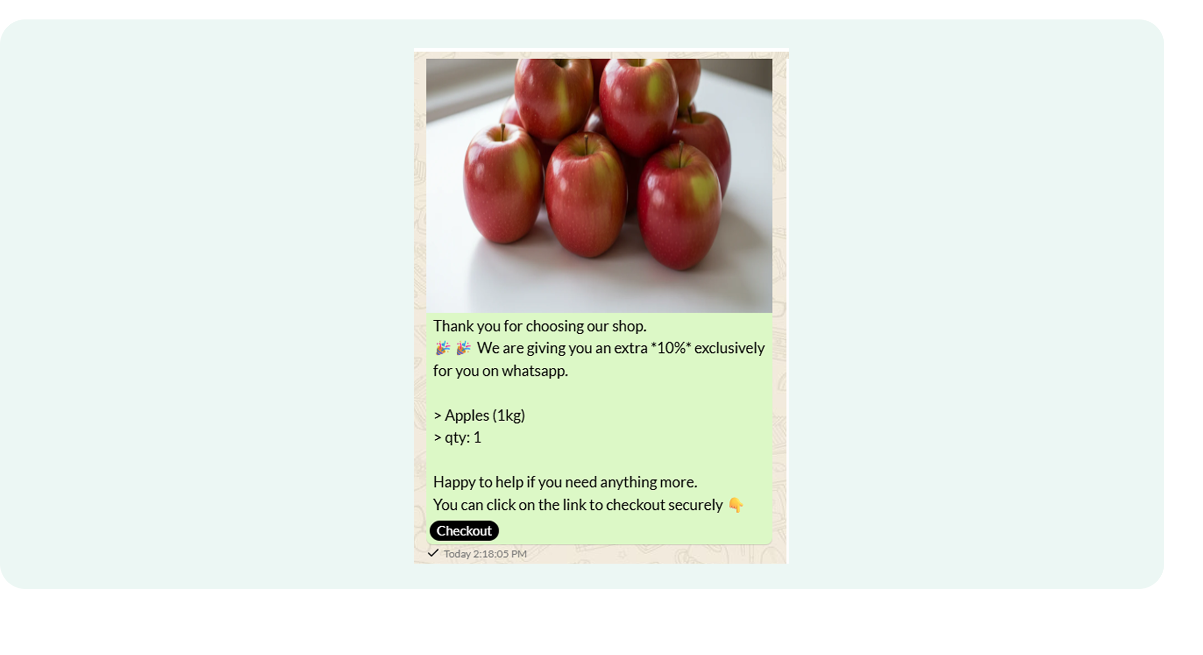 Once a visitor clicks the popover and joins the WhatsApp chat, they receive a unique link. When they click that link, the discount is automatically applied to their cart. There’s no need for them to manually copy and paste code at checkout.