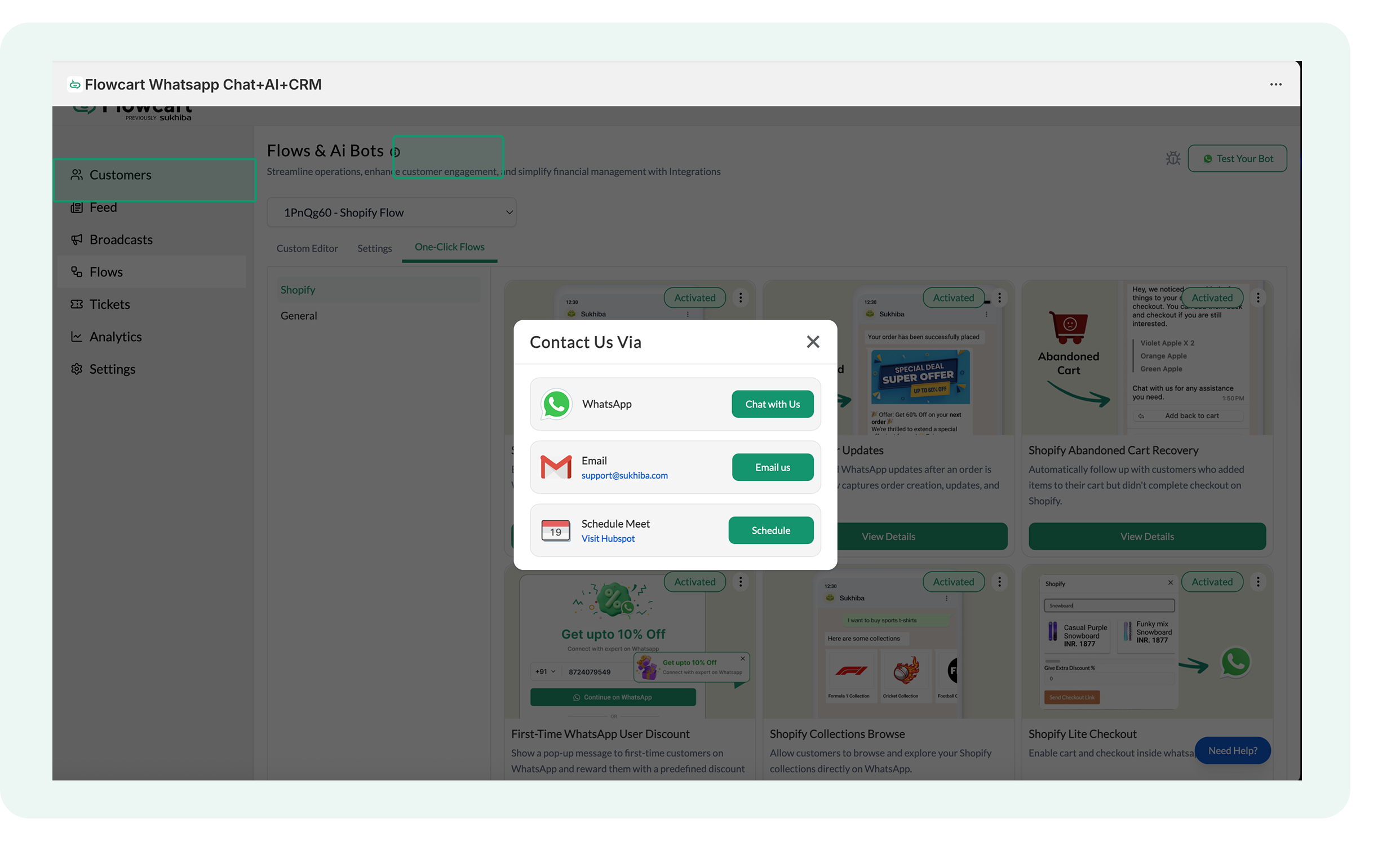 - Merchants can also use the Need Help option available in the Flowcart Shopify Plugin: