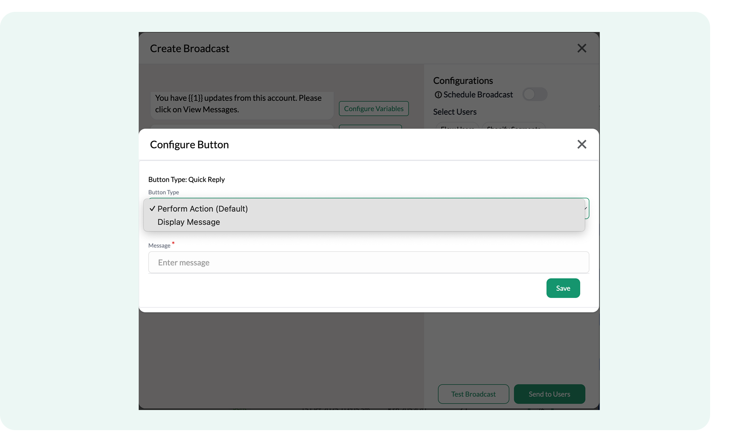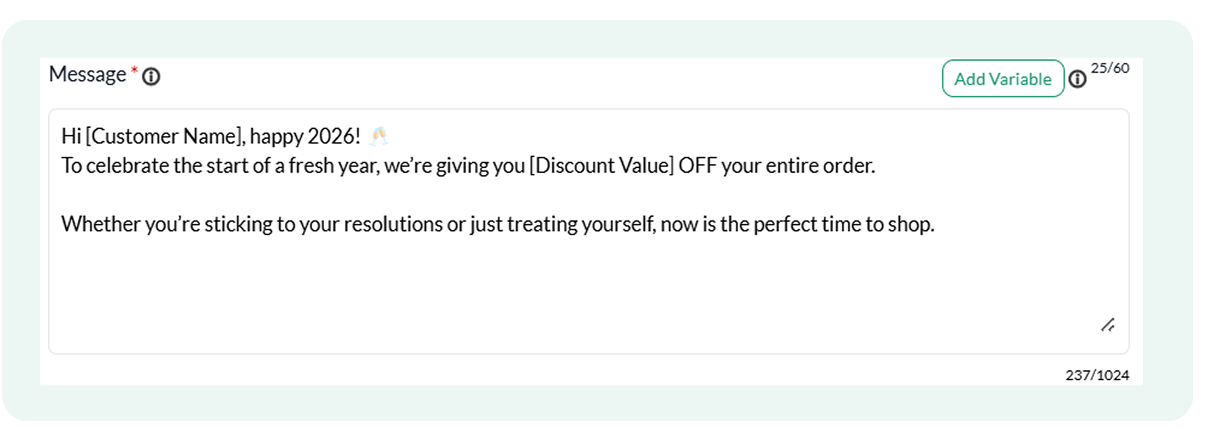 - Click inside the message text box to update the copy (For example, “Thanks for shopping.”)
