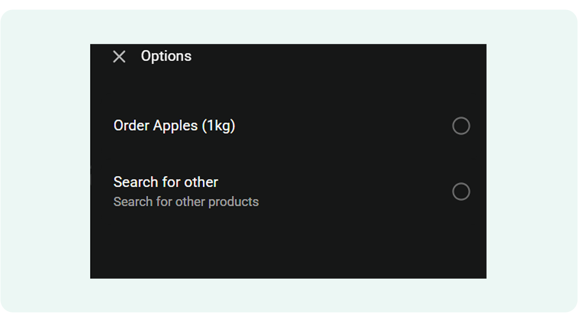 - In case the customer wants to continue with the order, they can select Order Apples or Search for Other Products.
