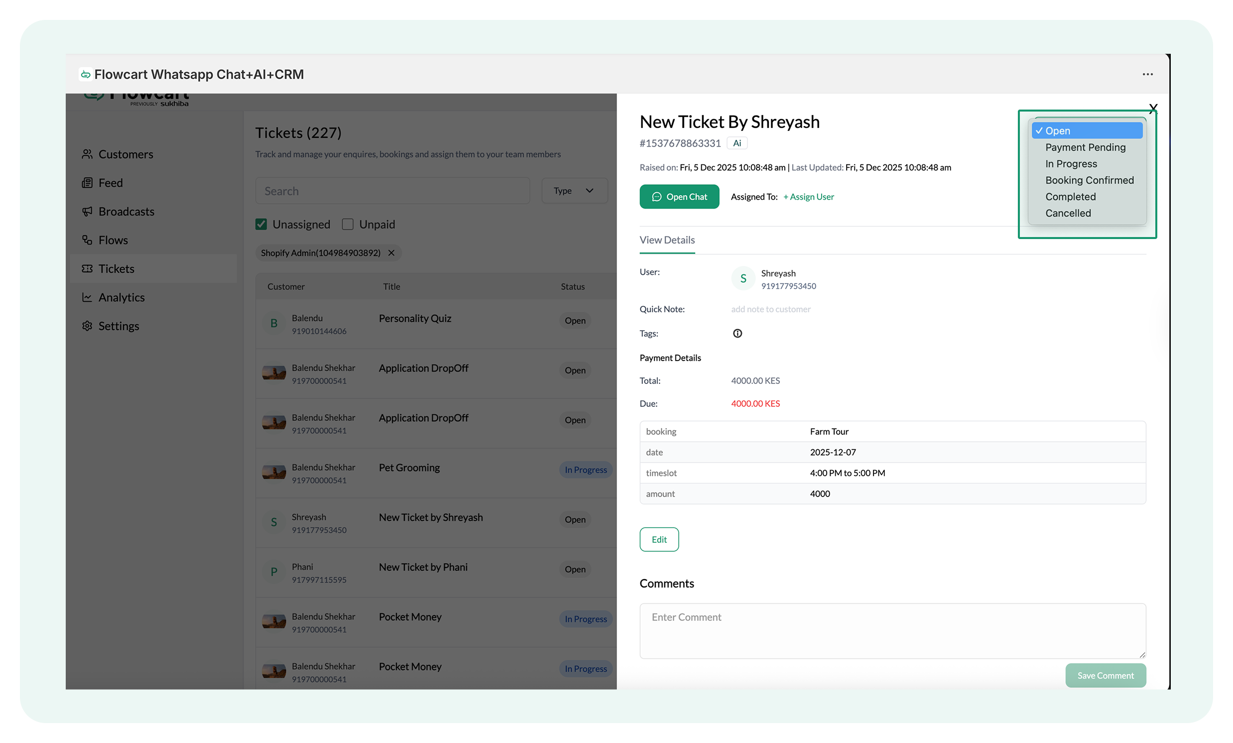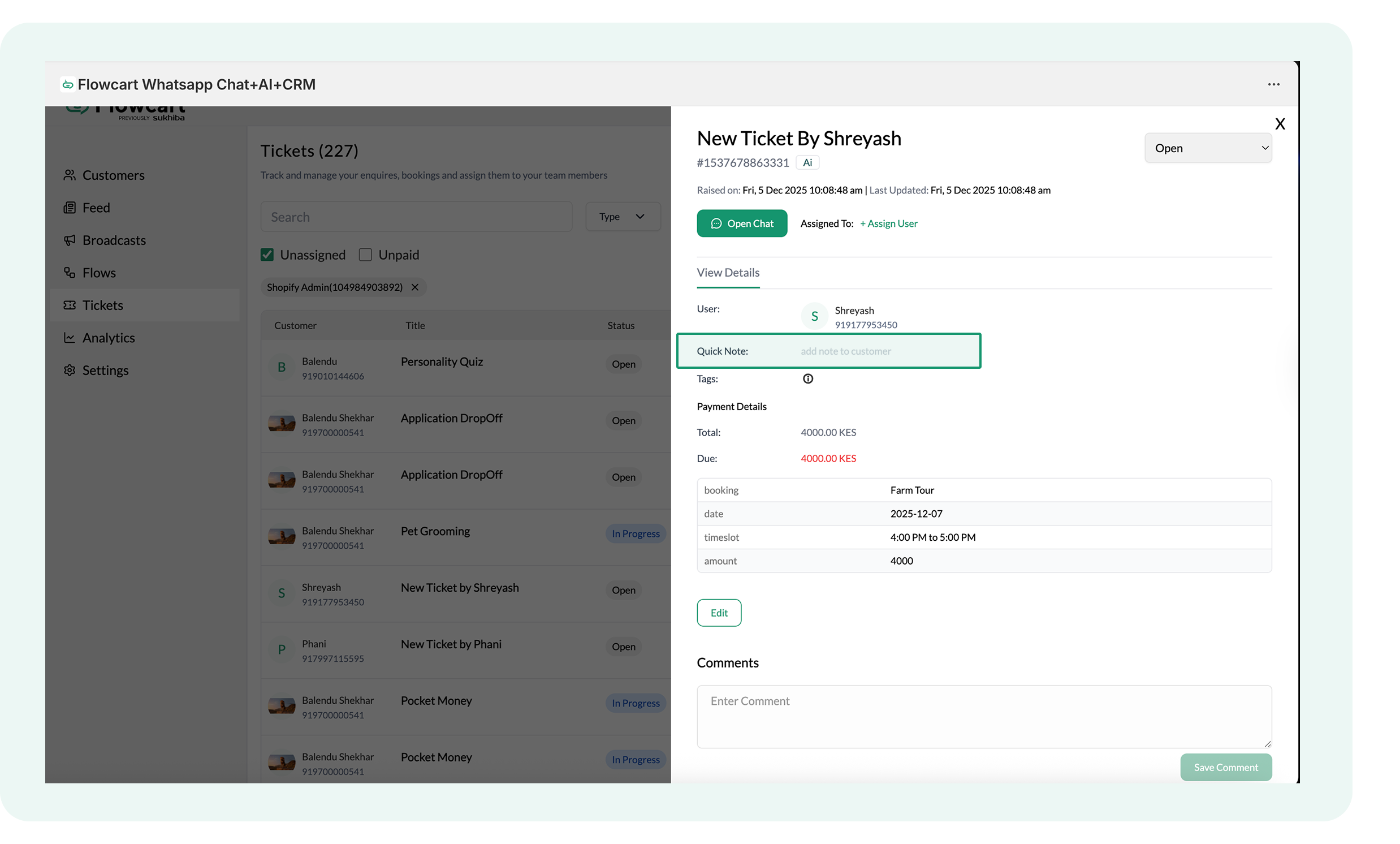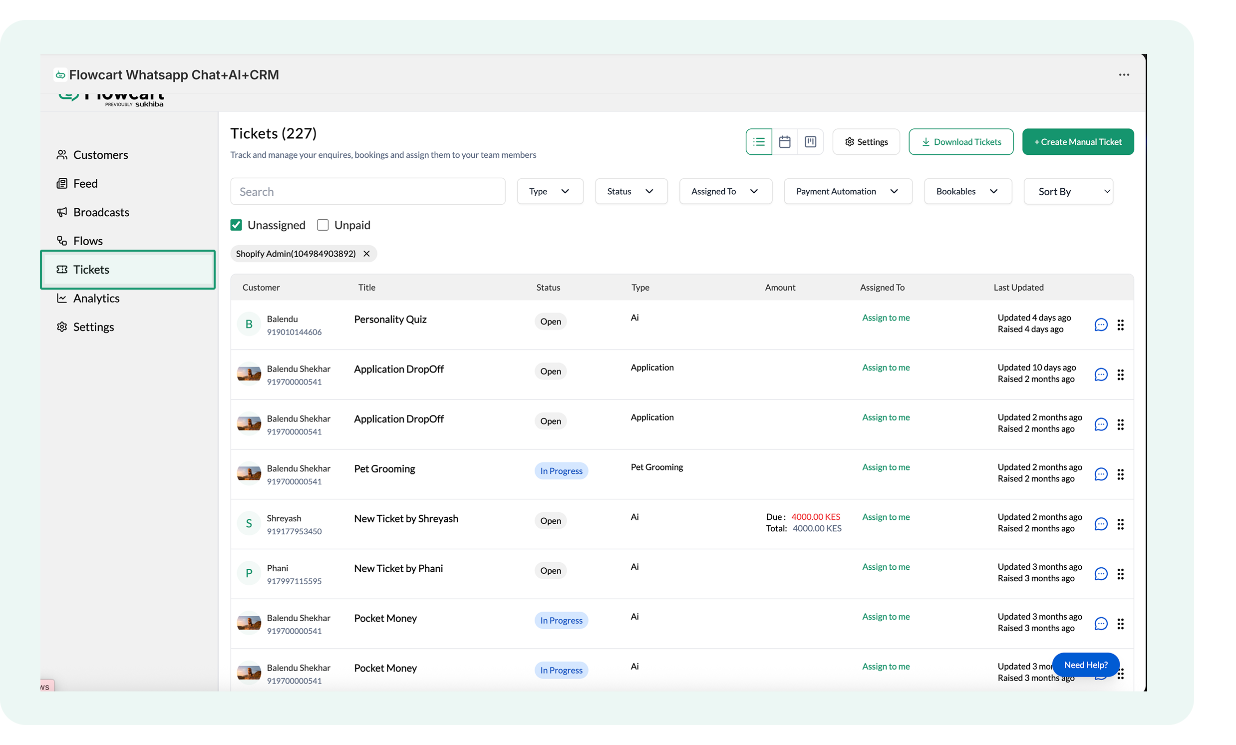 Managing Tickets in the Flowcart Shopify Plugin